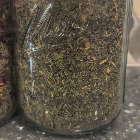 The Juniper Blend: A grounding, floral herbal tea with juniper berries, rose, and oatstraw